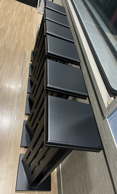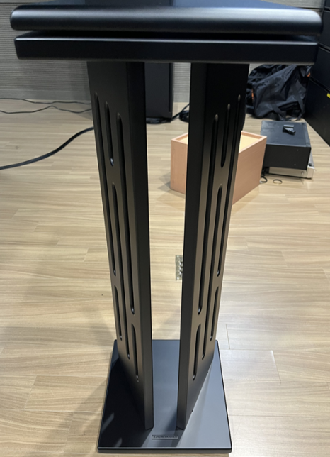 - 진동 최소화: 수직 패널 디자인에 타공 처리를 하여 진동 면적을 줄였으며, 방진 고무층이 포함된 2중 상판 구조와 하단부 방진 스파이크를 통해 불필요한 진동을 효과적으로 억제합니다.